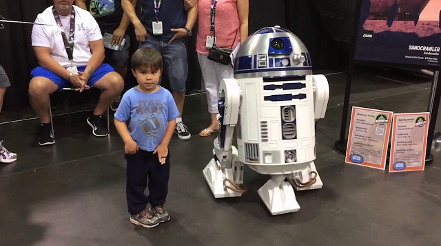 Dreamworks effects artist Daniel Hashimoto added cool effects to a video of his 4-year-old son, James (aka “Action Movie Kid”), exploring and interacting with fans and props at the recent Star Wars Celebration event in Anaheim, California.