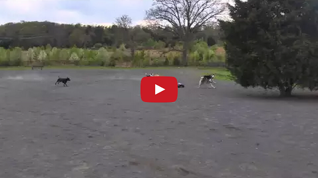 Dogs Have Fun Chasing a RC Monster Truck at the Dog Park