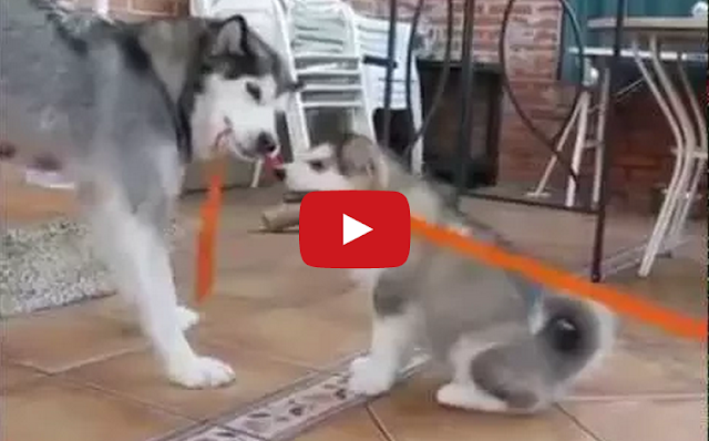 Husky Puppies Play Tug-of-War with Their Mom by Tastefully Offensive Four husky puppy fluff balls take on their mother in an adorable game of tug-of-war. [iloveanimals]