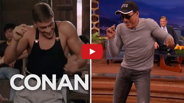 During last night’s episode of Conan, 54-year-old action movie icon Jean-Claude Van Damme proved he’s still got his sweet moves when host Conan O’Brien convinced him to reenact his dance/fight scene from the classic 1989 martial arts film, Kickboxer.