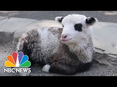 Earl the baby lamb, one of Staten Island Zoo‘s newest residents, bares a striking resemblance to a panda bear.