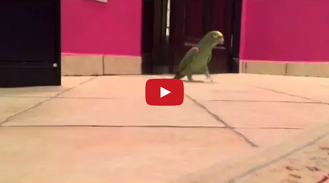 This cute yellow-headed amazon parrot struggles to push through a door and then cackles like a tiny, sinister super villain.