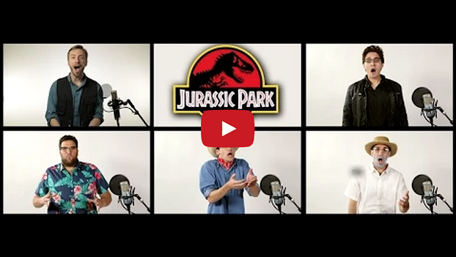 In honor of Jurassic World coming out today, nerdy sketch comedy group The Warp Zone teamed up with vocalist Peter Hollens to perform an a capella cover of the memorable theme music from the end credits of Steven Spielberg’s Jurassic Park.