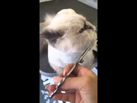 This adorably sinister cat sits patiently while his beard gets trimmed by a groomer from Cathy’s Critter Cleaners mobile grooming service in Los Angeles, California.
