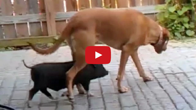 A baby pot-bellied pig has found the perfect shelter underneath her canine best friend. Now, if she could just get him to stop moving.