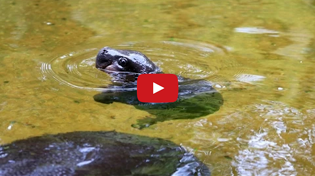 Baby Pygmy Hippo Goes for a Swim at Melbourne Zoo