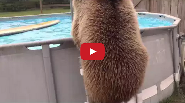 Grizzly Bear Has Fun Playing in Swimming Pool