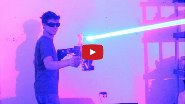 Here’s the video of his 6 watt “lightsaber” that he mentions in the laser shotgun video: