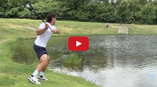Professional lacrosse player Paul Rabil performs a series of record breaking lacrosse trick shots with Dallas-based trick shot team Dude Perfect at Pennington Field in Bedford, Texas.