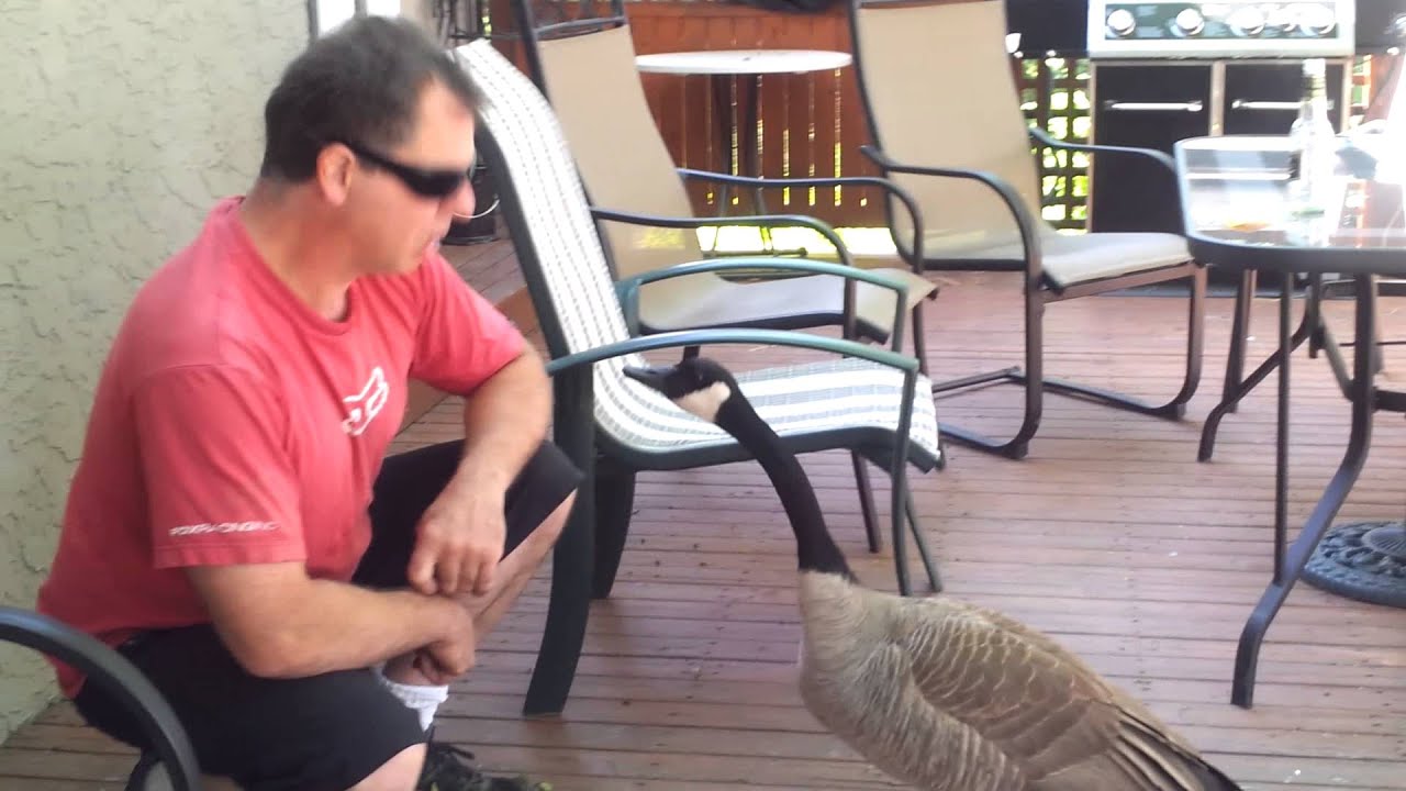I’m not sure what they’re talking about, but this guy and his Canadian goose friend appear to be having quite an interesting discussion.