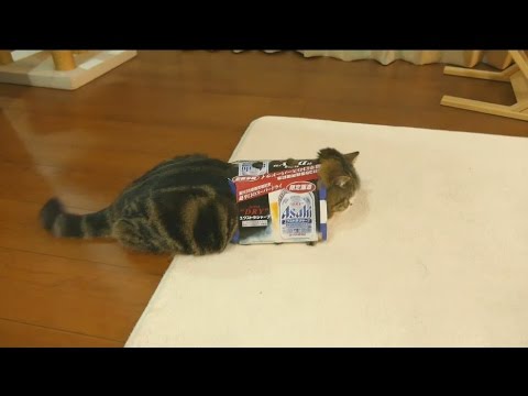 Maru the cat is famously known for being obsessed with every box he comes into contact with, so of course he wastes no time squeezing himself into two empty Asahi beer cartons when his human places them on the ground.