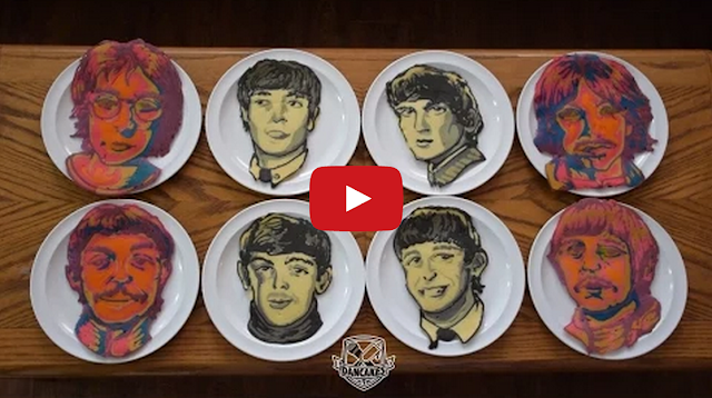 Saint Louis-based artist Daniel Drake, aka Dr. Dan the Pancake Man, creates amazingly detailed 1963 and psychedelic 1967 portraits of The Beatles band members out of pancakes.