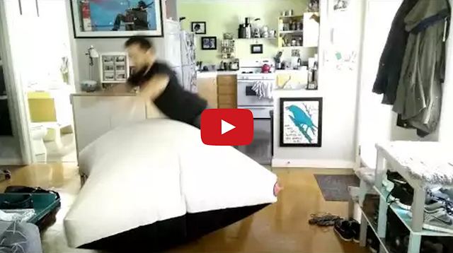 Los Angeles-based artist Onur Armagan turned an inflatable bed into a giant whoopee cushion, but not everyone in the house is amused by it.