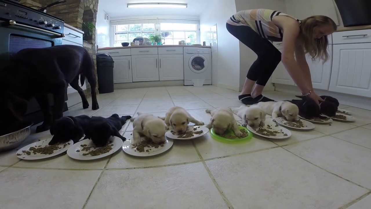 10 Labrador Puppies Eating Solid Food for the First Time