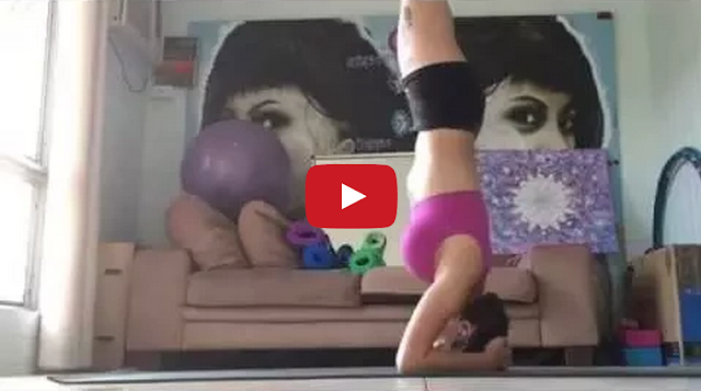 A cute ginger cat tries to steal the spotlight when his human sets up a camera to film her alignment and positioning during a yoga workout.