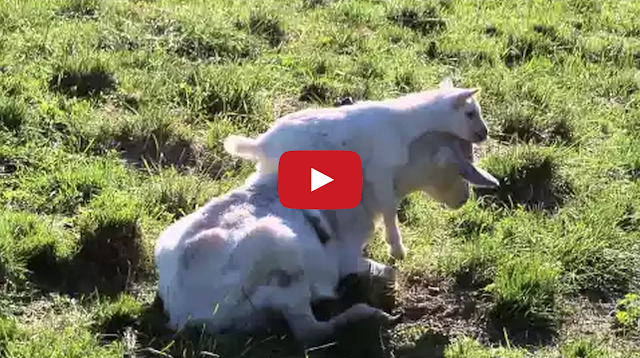 Baby Goat Wants Piggyback Ride from His Mother