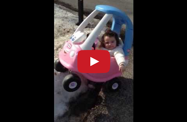 Dad Busts Daughter for ‘Drinking and Driving’ by Tastefully Offensive A cute little girl gets busted for drinking and driving after crashing her toy car into a snow bank. [Swags Wagner/via TheGreatPastaWars]