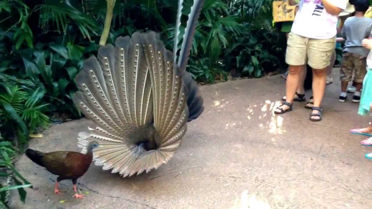 Mel Ethan Cutler filmed this male Great Argus pheasant trying his best to woo his love interest with a flamboyant mating dance at Disney’s Wild Animal Kingdom in Orlando, Florida.