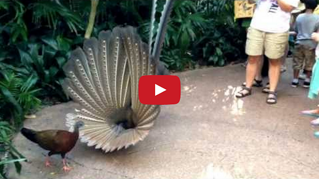 Mel Ethan Cutler filmed this male Great Argus pheasant trying his best to woo his love interest with a flamboyant mating dance at Disney’s Wild Animal Kingdom in Orlando, Florida.