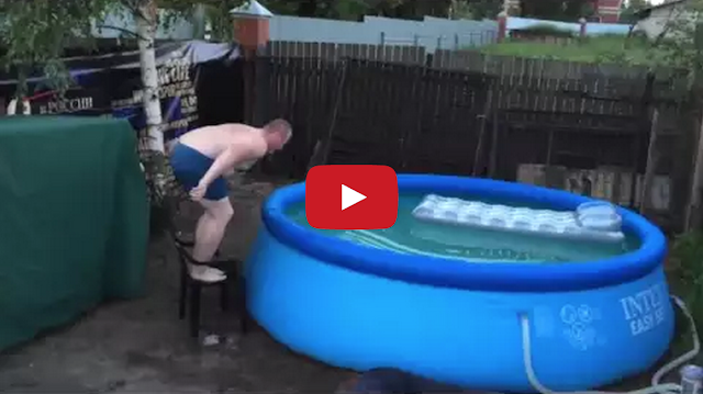 Guy Fails Miserably at Jumping Into Pool by Tastefully Offensive This big Russian guy makes the horrible decision to use a plastic lawn chair as a diving board for his above ground pool. [Cole Mackenzie/via Neatorama]