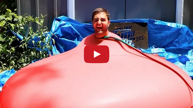 Guy Squeezes Into Huge Water Balloon