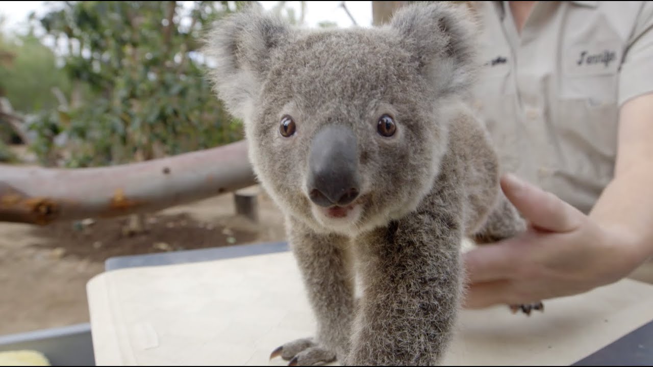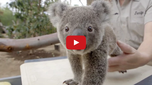 In this adorable short video, Jennifer Roesler, a keeper from San Diego Zoo, uses a koala plush toy to comfort a 9-month-old koala joey while he gets his weekly checkup.