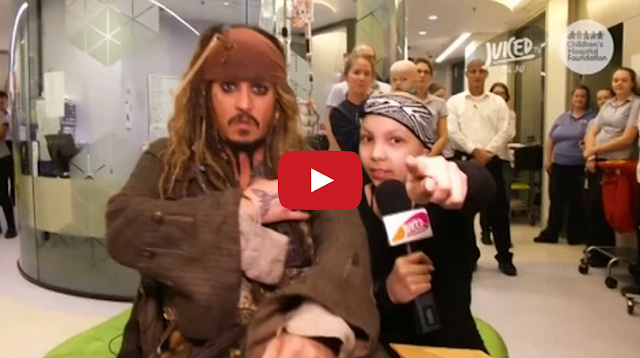While filming the fifth installment of Disney’s Pirates of the Caribbean film series, Pirates of the Caribbean: Dead Men Tell No Tales, in Australia, actor Johnny Depp stopped by the Lady Cilento Children’s Hospital in Brisbane, Australia, in character as pirate Captain Jack Sparrow, to visit and entertain sick children.