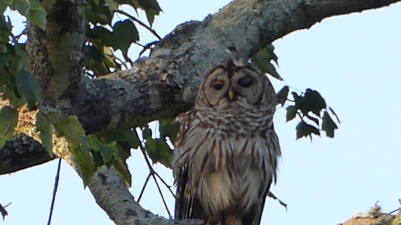 This majestic looking barred owl doesn’t seem to care at all that he’s being dive-bomb attacked by a group of small birds.