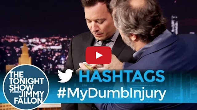 Tonight Show Hashtags: #MyDumbInjury by Tastefully Offensive Tonight Show host Jimmy Fallon reads some of his favorite fan-submitted tweets from the Twitter hashtag he created, #MyDumbInjury. Previously: #EmailFail [The Tonight Show]
