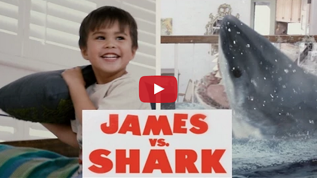 In the latest video by Dreamworks effects artist Daniel Hashimoto, Daniel’s 4-year-old son, James, aka Action Movie Kid, attempts to save his baby sister from a deadly shark attack when the living room suddenly becomes a fierce ocean.