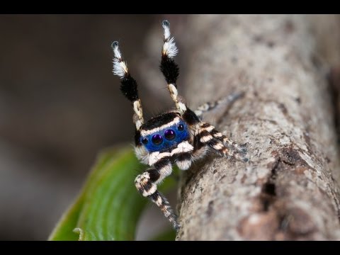 A ridiculously cute blue masked peacock spider from Western Australia performs some sweet dance moves in an attempt to attract the attention of his tiny love interest.