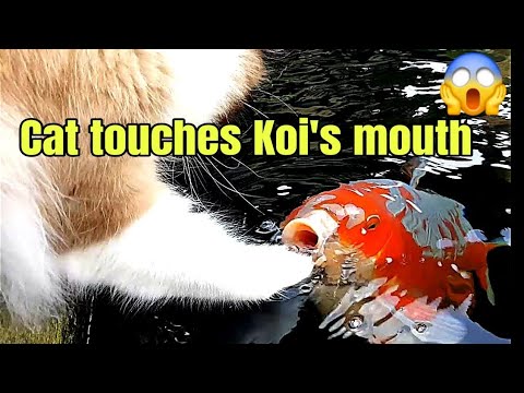 Cat Makes Friends with Koi Fish