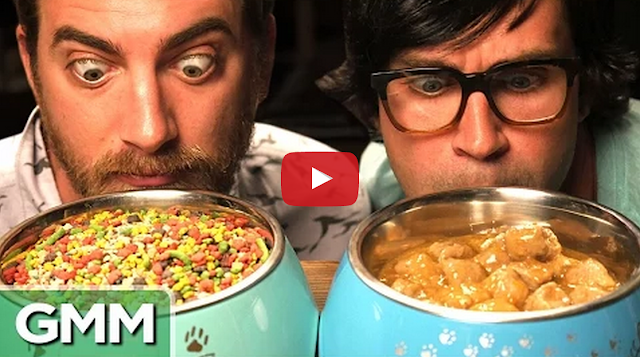 In a recent episode of their daily morning comedy show Good Mythical Morning, comedy duo Rhett & Link (Rhett McLaughlin and Charles “Link” Neal) blindly sample a selection of pet foods, then try to guess which animal the food is intended for.