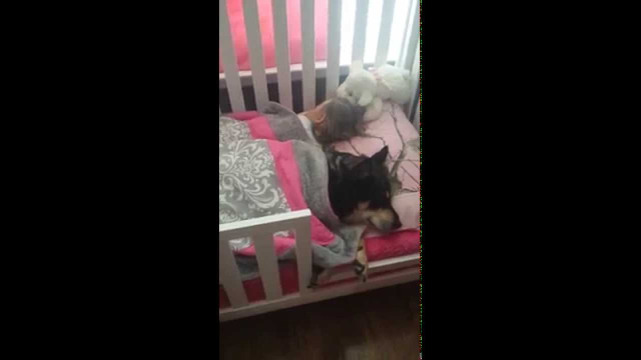 Dog Takes Nap with Toddler in Crib