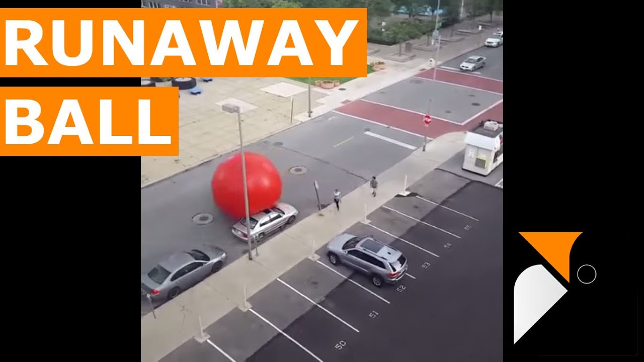 Earlier today, Instagram user jeremy419 filmed this 15-foot-tall, 250-pound inflatable red ball roll away from a display at Ohio’s Toledo Museum of Art and take off down a city street. Museum workers were eventually able to stop the ball and return it to the exhibit.