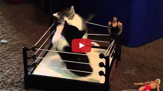 Kitten Professional Wrestling by Tastefully Offensive Two tiny kittens go paw-to-paw in a kitten-sized toy WWE wrestling ring. It looks like The Undertaker is waiting to be tagged in. [AFHV]