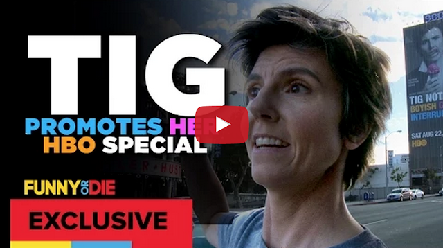 Comedian Tig Notaro visited the site of her giant billboard in Los Angeles to encourage people on the street to watch her upcoming HBO stand-up comedy special Tig Notaro: Boyish Girl Interrupted on August 22nd.