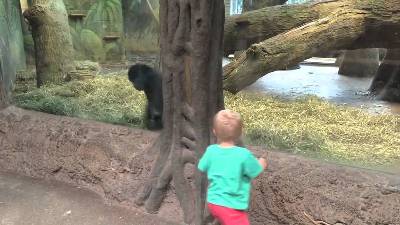 Toddler and Baby Gorilla Play Peek-a-Boo at the Columbus Zoo