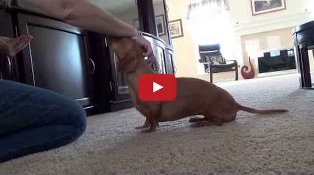 Gracie the dachshund demonstrates her running “bang” trick, where she dramatically runs and slides towards her human when the word “bang” is shouted.