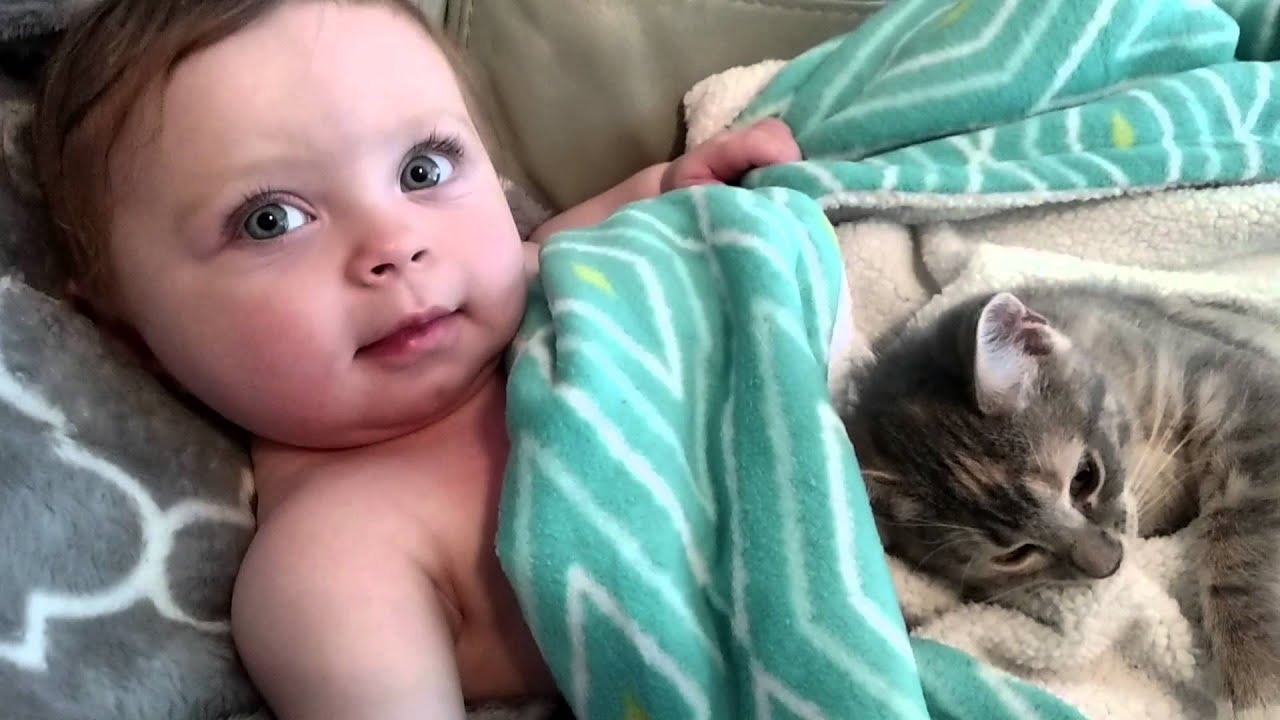In this ridiculously cute video, Jennifer Stetler films as her 8-month-old, bright eyed daughter wakes up from a nap after falling asleep with her new kitten, Eevee.