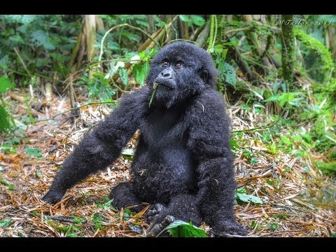 Tourists visiting Virunga National Park in Rwanda, Africa were treated to this hilarious encounter with a two-year-old baby mountain gorilla, who became intoxicated after eating too much fermented bamboo. The tipsy young gorilla had fun rolling around and swinging on vines while his mother kept a close eye on him from nearby.