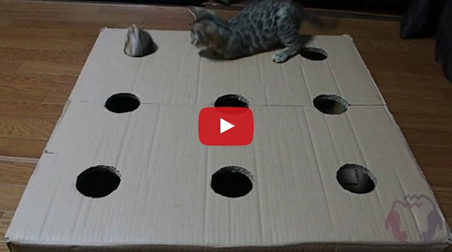 Bengal kitten sisters, El Melik and Suudo, have fun attacking each other while playing a homemade version of Whack-a-mole.