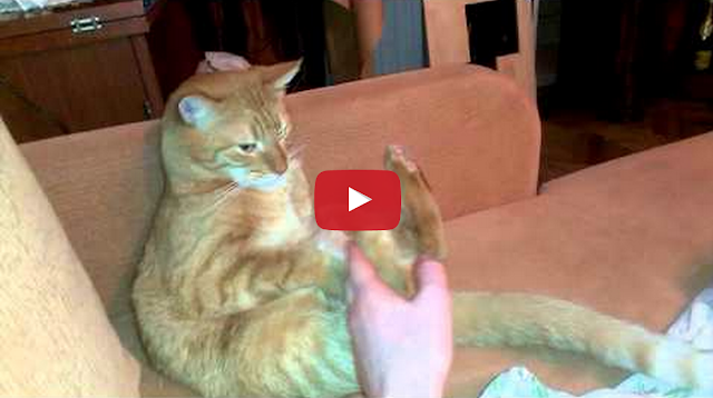 Cat Repeatedly Kicks Himself in the Face ByTastefully Offensive September 9, 2015 This cute ginger tabby cat from Russia kicks himself in the face with his left foot whenever his human pulls his right foot like a slot machine handle. [Oleg Kam/via Versutas]