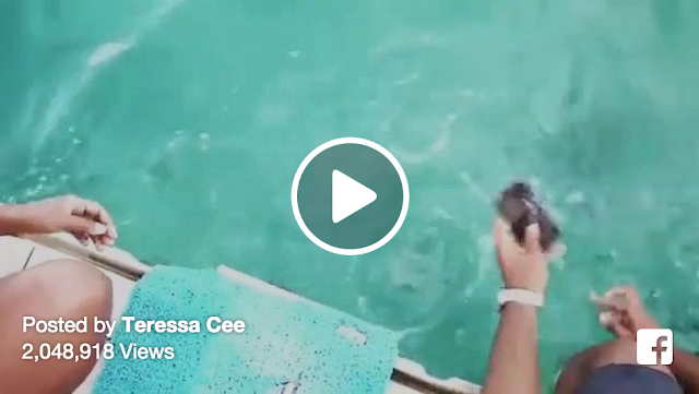 Cacique, the dolphin, came to the rescue when Teressa Cee’s iPhone was accidentally dropped into the ocean while she was vacationing at the Blue Lagoon Island resort in the Bahamas.