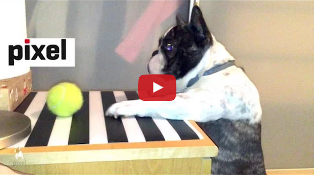Pixel, the French bulldog puppy, has a frustrating habit of getting his favorite tennis ball stuck in places just beyond his reach.