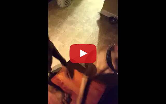 Pit bulls Missy and Laydie are super excited to see their human when he gets home, but they have zero interest in discussing which of them chewed up his sweatpants.
