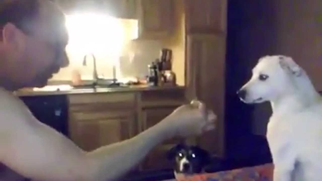 Guy Blows His Dog’s Mind with Disappearing Treat Trick
