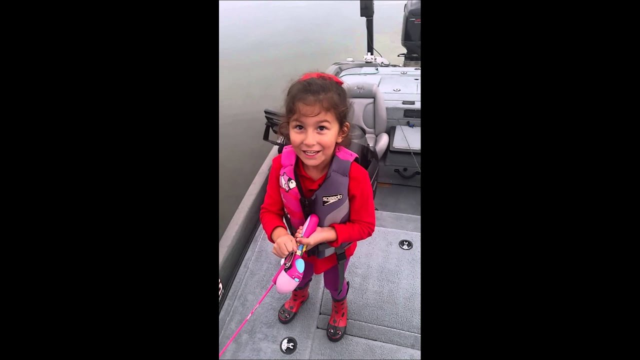 While fishing on a boat with her dad, this adorable girl named Avery manages to reel in a five pound largemouth bass with her little barbie fishing pole. This was clearly an experience she, and her dad, will never forget.