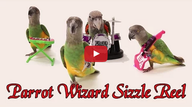 Parrot Trainer Michael Sazhin, aka The Parrot Wizard, put together this 2015 sizzle/highlight reel of tricks, TV appearances, and “parroties” (parodies) by his talented parrot trio Kili, the Senegal parrot, Truman, the Cape parrot, and Santina, the green-winged macaw. You can watch the full videos featured in this reel on Michael’s YouTube channel.