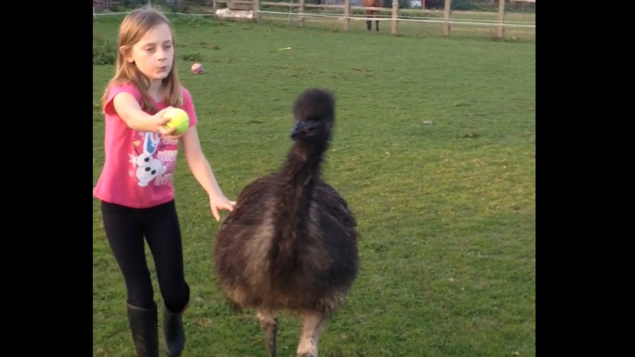 This playful emu has a blast playing fetch with her human, but instead of picking the ball up like a dog, she prefers to do a little dance around it instead.